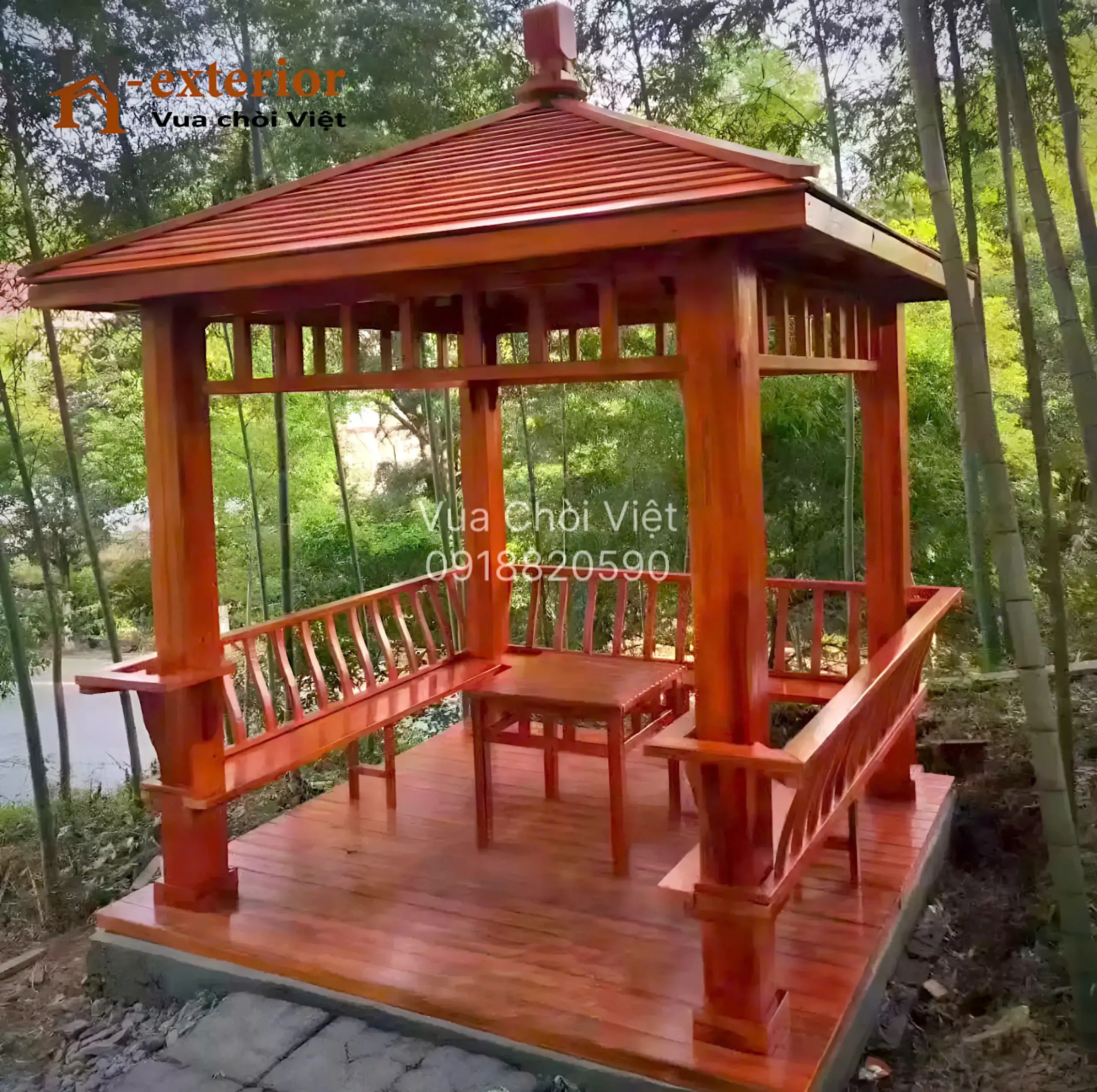 -Vật liệu mái: Mái có thể được gỗ hoặc gạch nhựa vừa bền đẹp, chắc chắn. Có khả năng chống mưa, chống nóng vừa mang tính nghệ thuật cao.