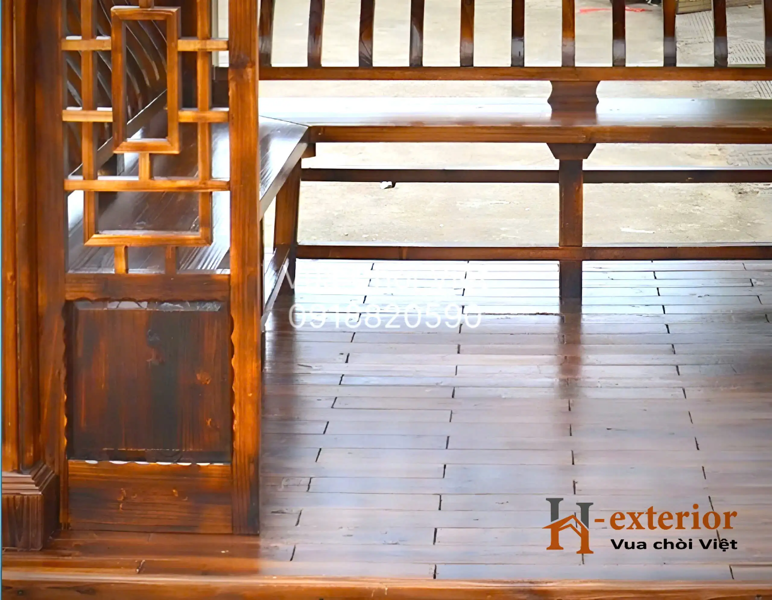 – Trang trí: Chòi có thể được lắp quạt để làm mát và luôn chuyển không khí tươi. Có thể lắp đèn xung quanh chòi hoặc trên mái. Thường là đèn LED hoặc đèn có thiết kế cổ điển. Tạo ánh sáng ấm áp và lãng mạn vào buổi tối. Chòi được lắp 2 tấm bình phong phía trước với các đường nét trang trí đậm phong cách tân cổ điển. Phần đầu bò được trạm khắc tinh xảo càng tăng thêm tính thẩm mỹ.