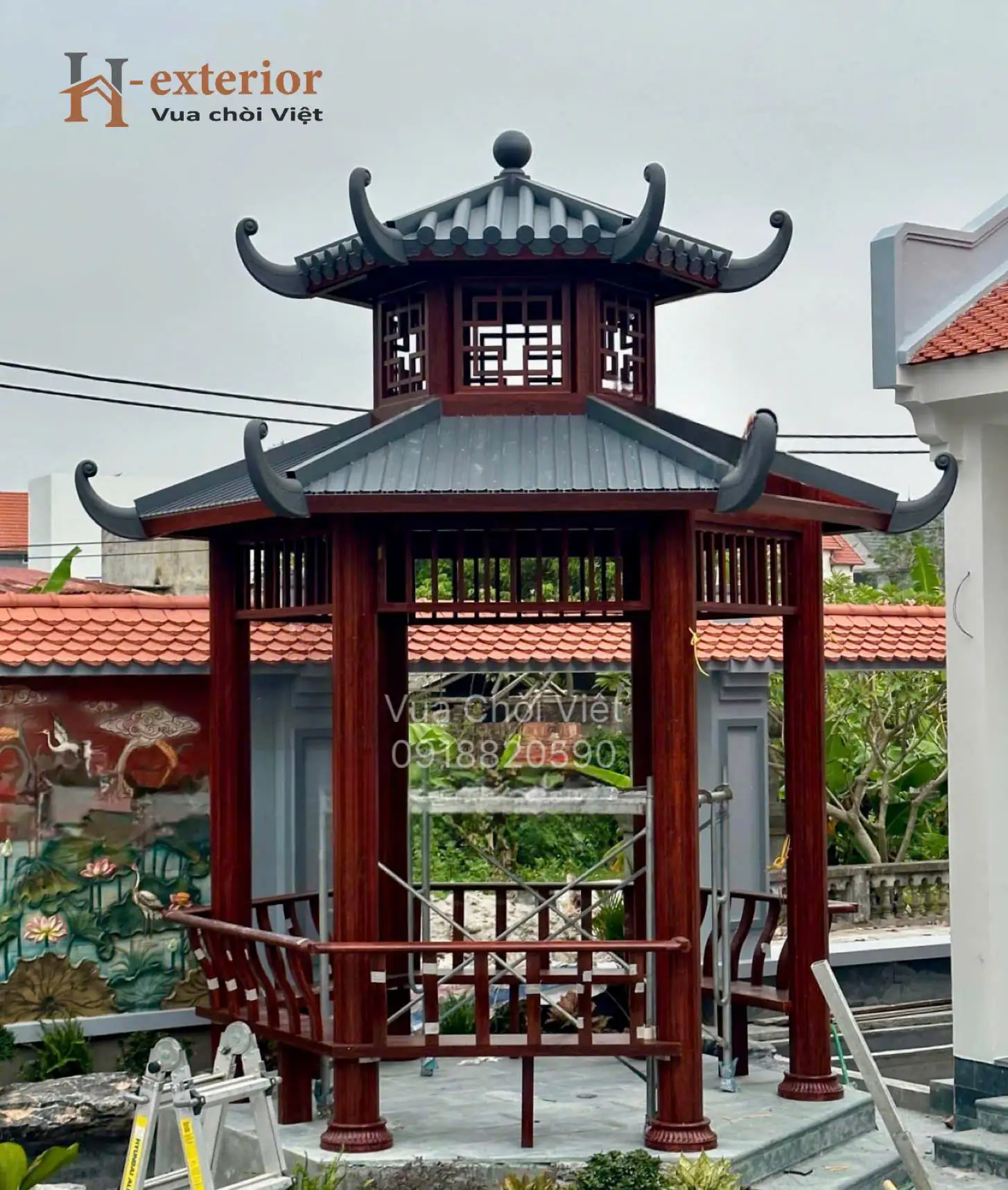 – Chóp mái: Gắn viên cầu đỉnh, tăng tính cổ kính và trang trọng.