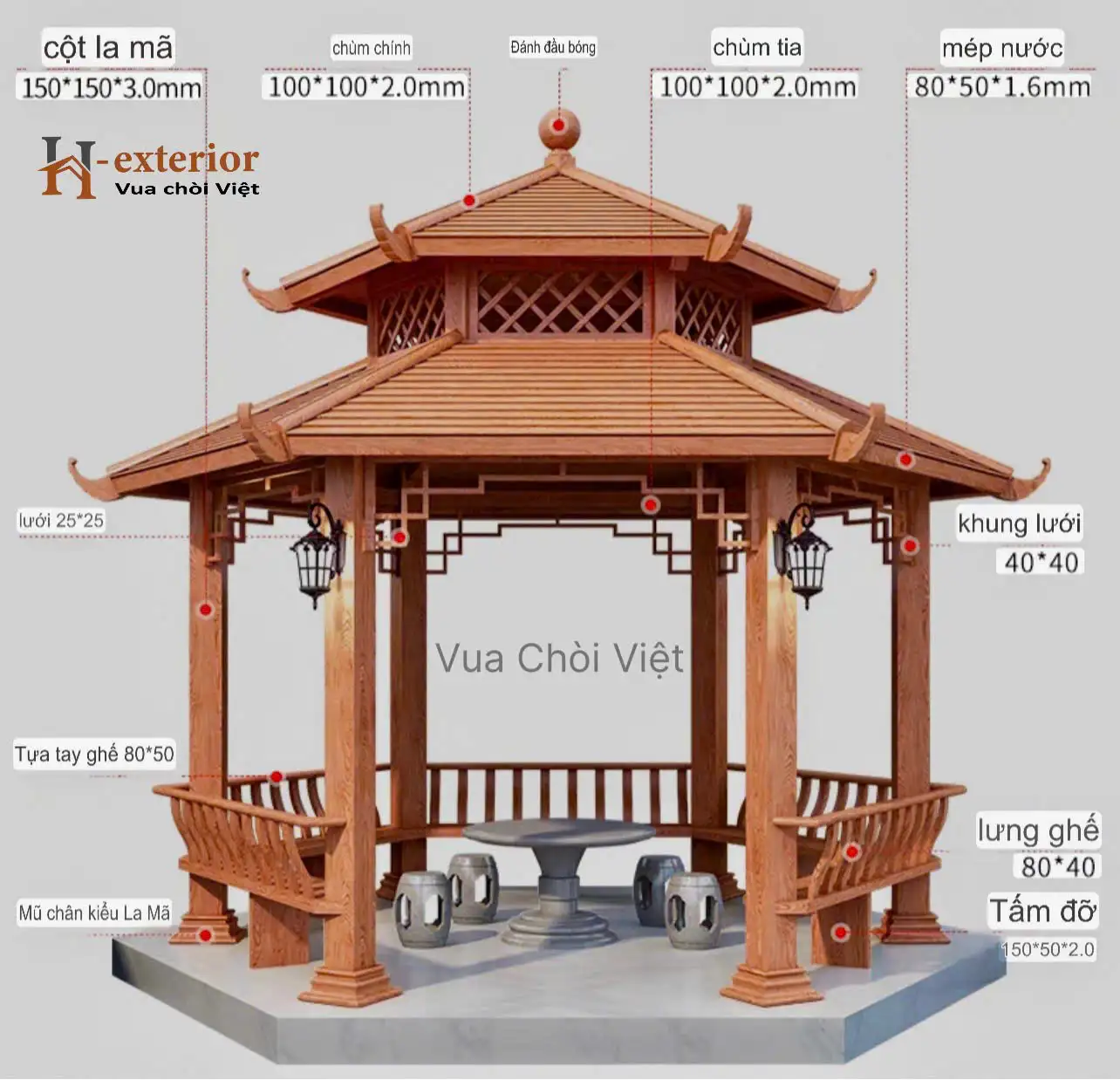Chòi Sân Vườn Hợp Kim Nhôm 2 Tầng Mái – Đẳng Cấp Kiến Trúc Lục Giác Độc Đáo