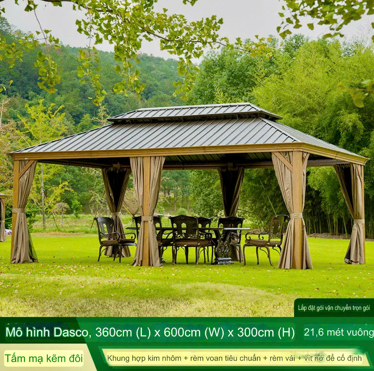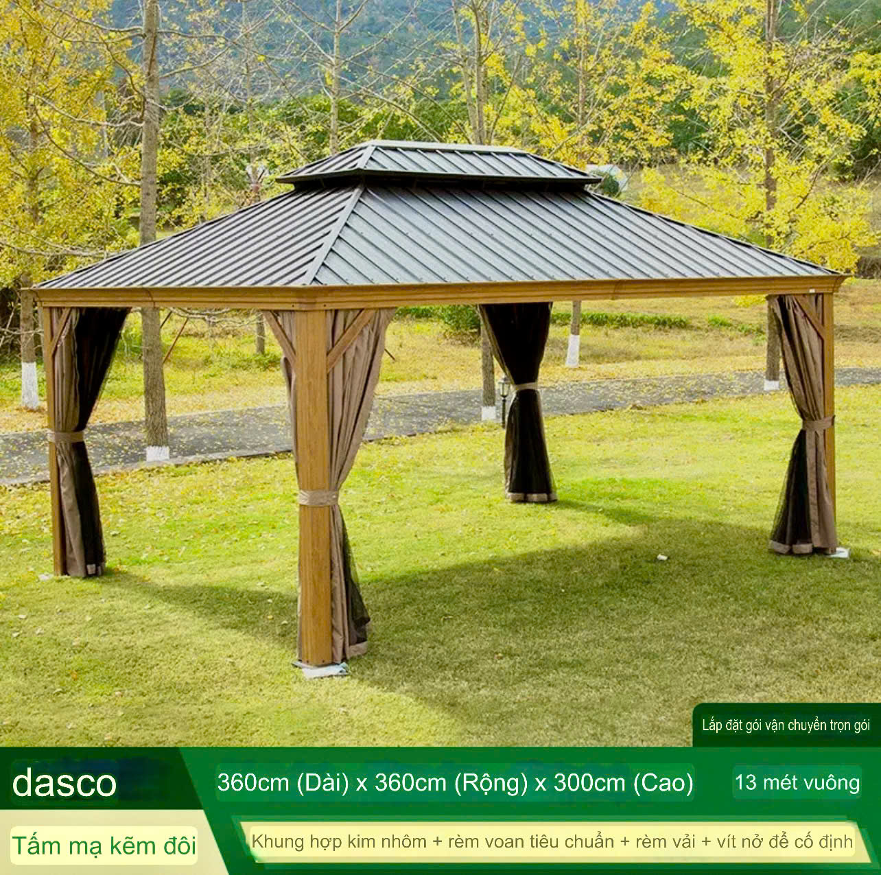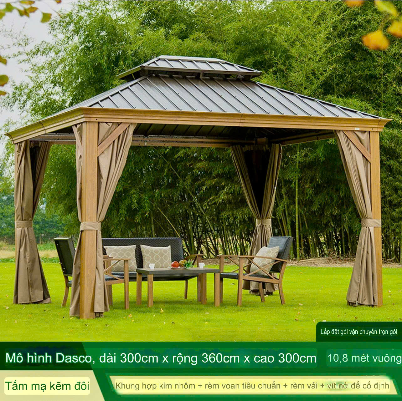 Chòi Sân Vườn Hợp Kim Nhôm Sơn Màu Gỗ – Giải Pháp Thư Giãn Bền Đẹp, Gần Gũi Thiên Nhiên
